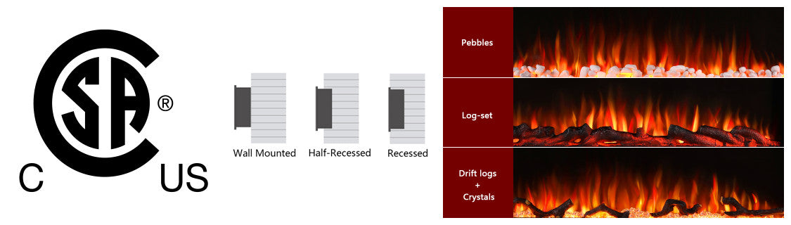 • 【4 Media Options】Product Dimensions:50"L x 21.46"H x5.51 "W. include log set, drift logs, crystals and pebbles.
